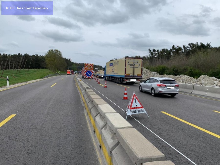 Zu Verkehrsunfall im Baustellenbereich mit einer verletzten Person und drei beteiligten Fahrzeugen kam es auf der A9 in Fahrtrichtung Nürnberg.