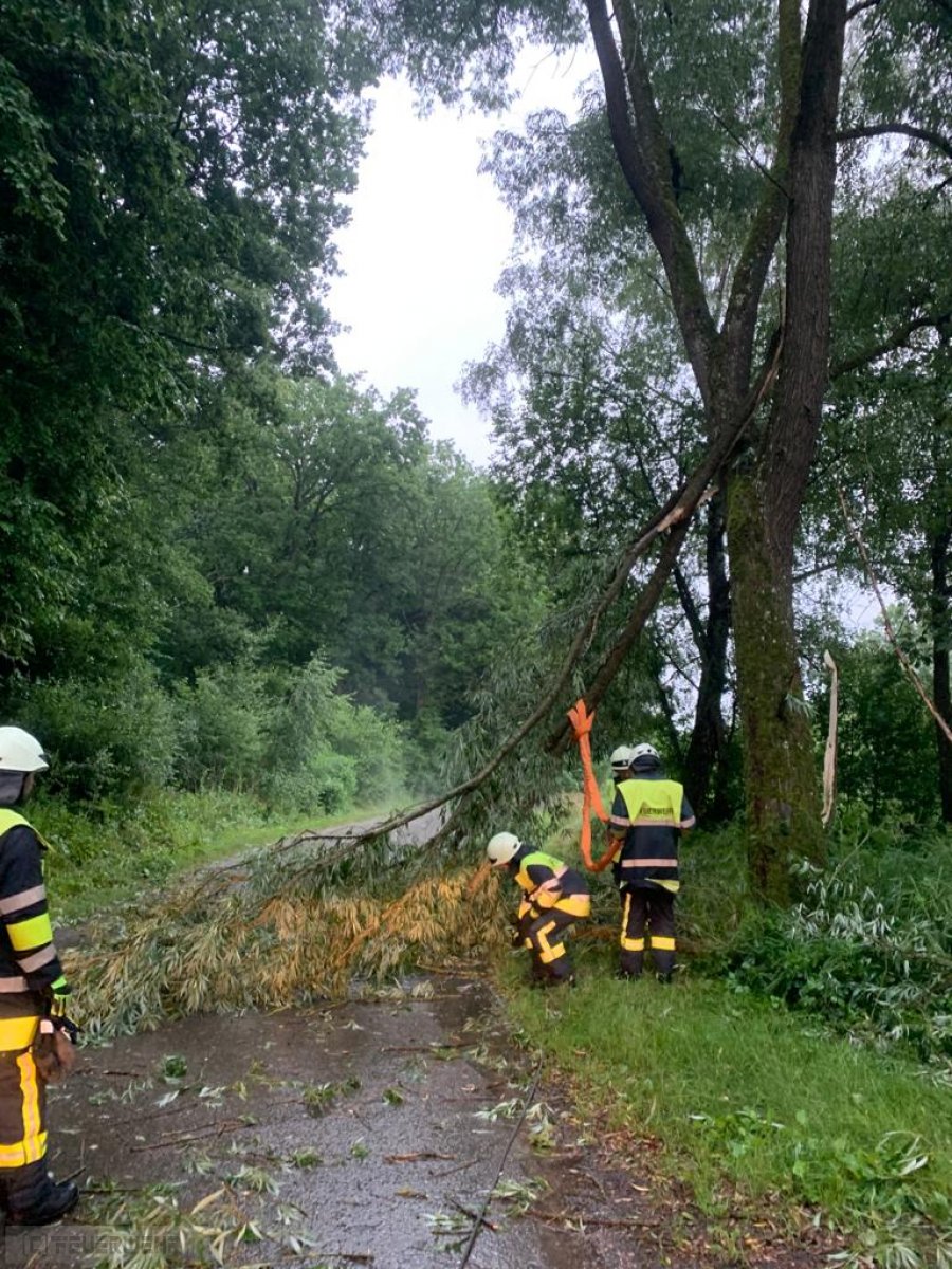 Es wurden über Funk mehrere Bäume auf der Fahrbahn gemeldet.