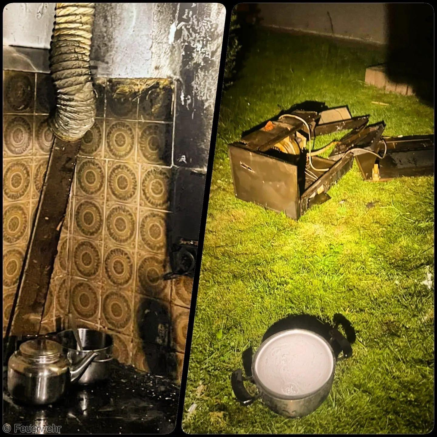 Teile der Küche mussten aufgrund des Brandes demontiert werden und wurden dann ebenfalls im Garten komplett abgelöscht.