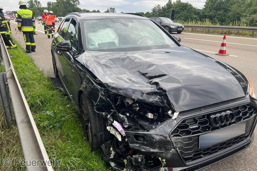 Wir wurden von Langenbruck nachalarmiert zu einem Verkehrsunfall auf der A9. Dort fuhr ein Fahrzeug auf ein Wohnmobil auf, es waren nur leicht verletzte Personen anzutreffen.