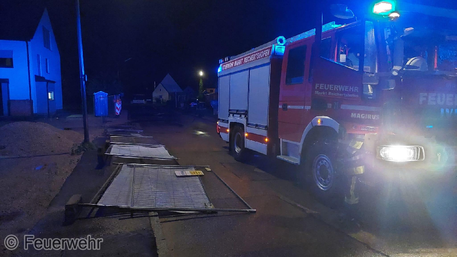 Der Bauzaun lag auf der Fahrbahn, wurde wieder aufgestellt und gesichert