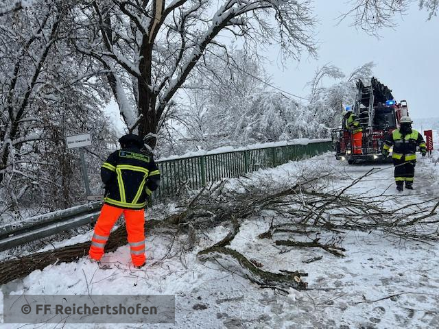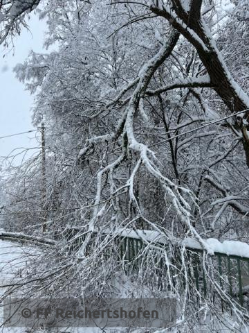 ein größerer Ast brach aufgrund der Schneelast herunter und blieb in der Strmleitung hängen.