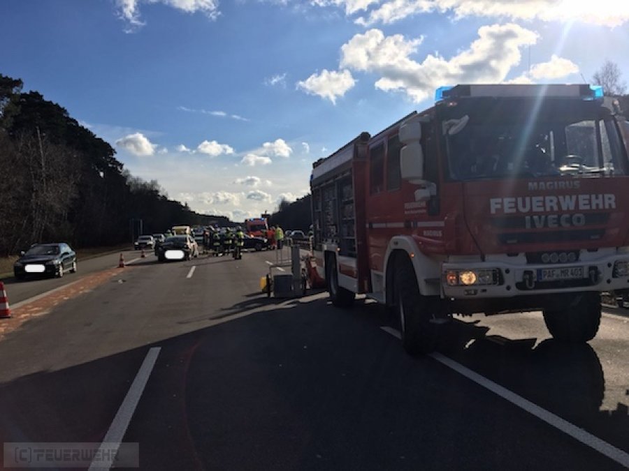 Auf der BAB 9, Höhe Baarer Weiher in Fahrtrichtung Nürnberg, ereignete sich heute Nachmittag ein Unfall mit mehreren beteiligten Fahrzeugen. Zwei Personen wurden leicht verletzt und vom Rettungsdienst versorgt. Während der Bergungsmaßnahmen waren drei Spuren gesperrt. Auslaufende Betriebsstoffe wurden gebunden und die Fahrbahn gereinigt.