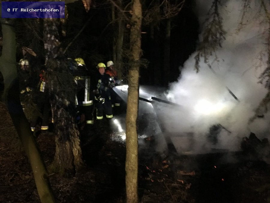 Ein gemeldeter Waldbrand stellte sich als ein Brand einer Hütte heraus, die früher einmal zum Imkern genutzt wurde.
