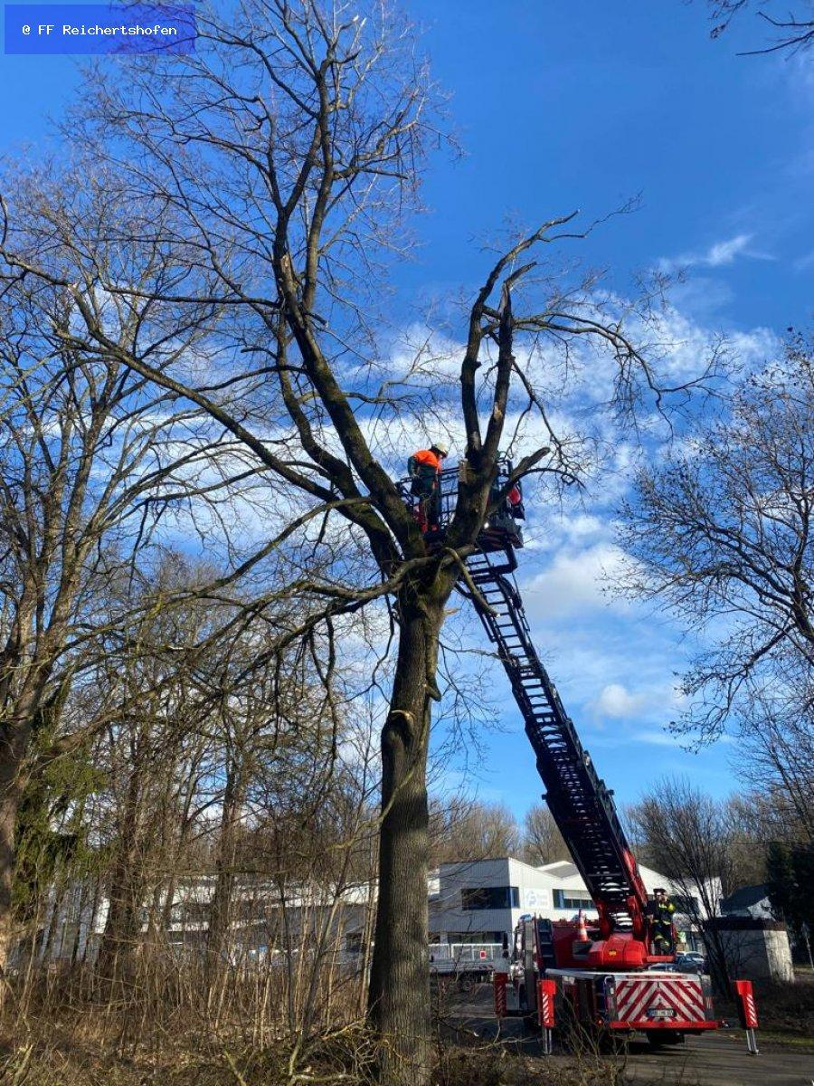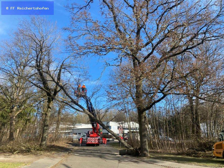 Der Sturm beschäftigt auch die Feuerwehr Ebenhausen. Da ist ein Baum umgefallen und hing auf der anderen Straßenseite in einer Astgabel. Da dieser nicht herauszuziehen war, wurden wir nachalarmiert.
