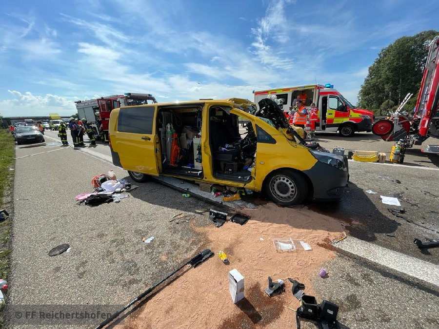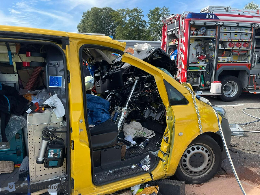 Bei einem Auffahrunfall am Stauende wurde eine Person in einen Kleintransporter eingeklemmt.