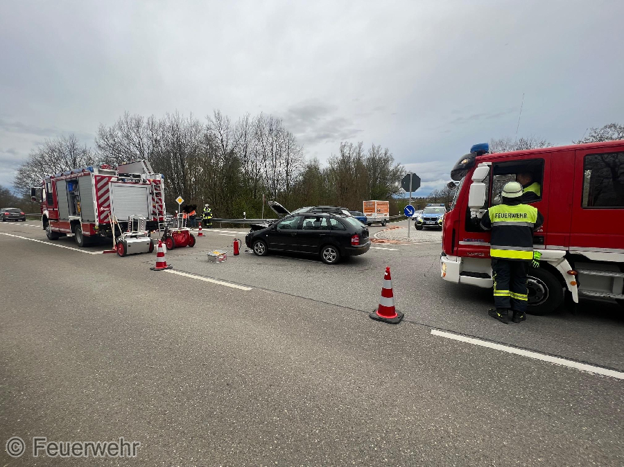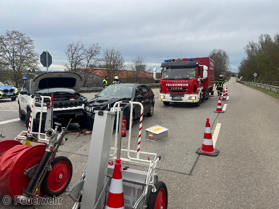 Die beiden PKW waren auf der Brücke zur B13 zusammengestoßen.