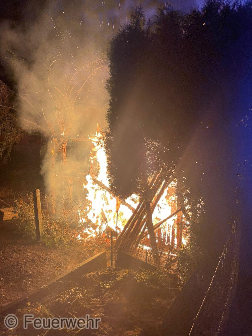 Der Brand einer Gartenhütte in einer Schrebergartenanlage beschäftigte uns spät abends.