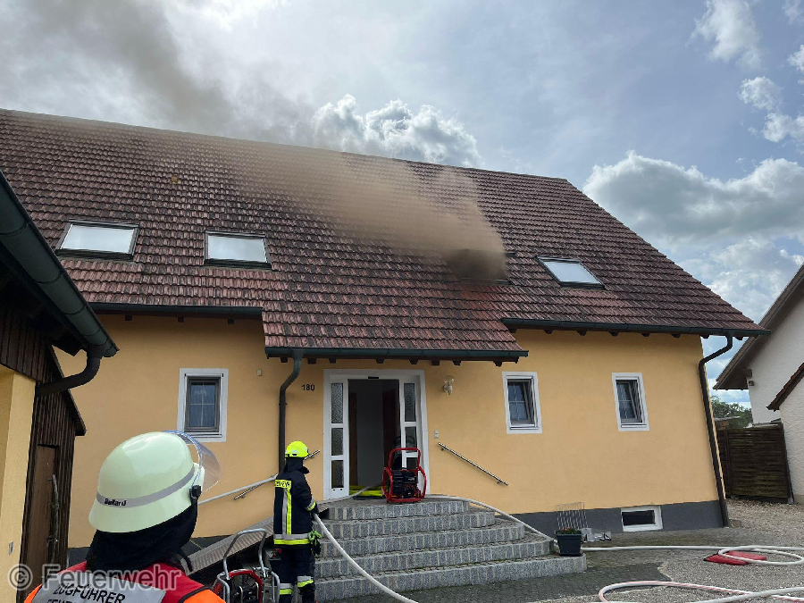 Dies zeigte schnell Wirkung, ein Übergreifen auf die zweite Haushälfte über die Dachkonstruktion konnte aber leider nicht komplett verhindert werden.