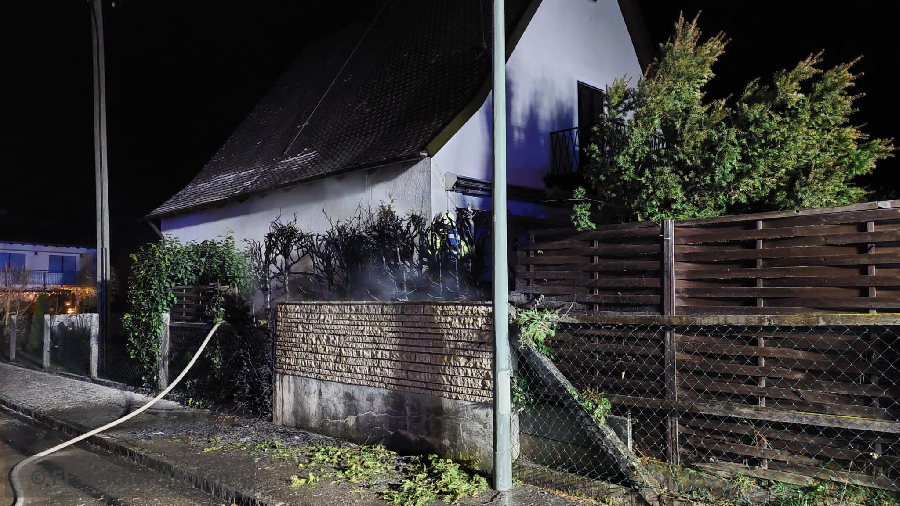 Eine Hecke, die direkt neben einem Gebäude stand fing Feuer. Das Feuer drohte auf das Wohnhaus überzugreifen.