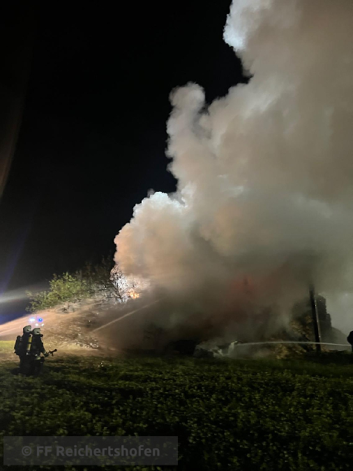 Wir wurden zu einem Heuschuppen alarmiert, dieser stand bei Eintreffen der ersten Kräfte in Vollbrand.