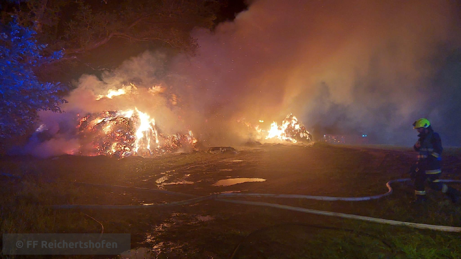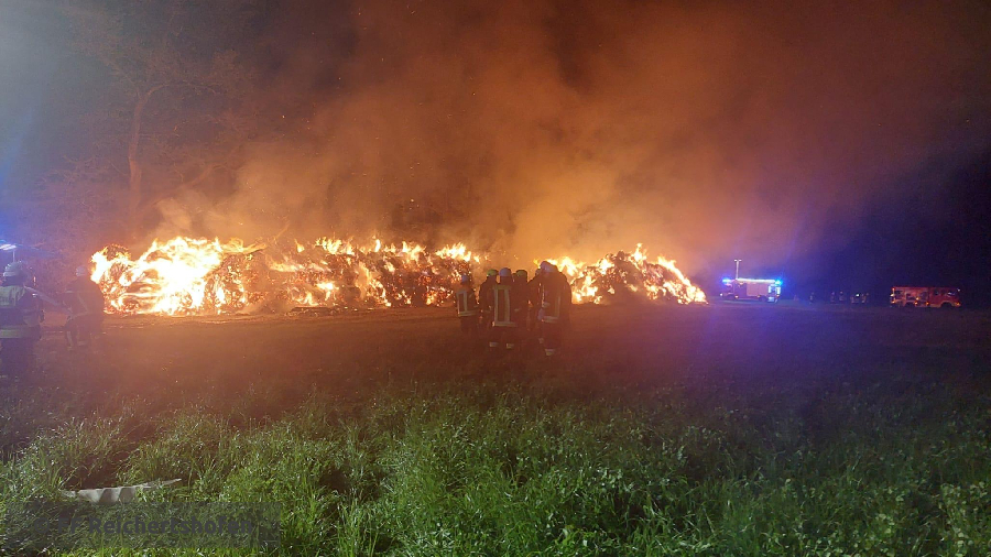Wir wurden erneut zu einem Großbarnd gerufen, mehrere hundert Heuballen brannten lichterloh auf einem Feld bei Adelshausen