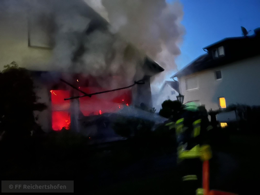 Schon auf der Anfahrt war die Rauchsäule sichtbar, die erste Lagemeldung von der Feuerwehr Baar bestätigte einen Gebäudebrand mit Nachforderung der Feuerwehr Ebenhausen.
