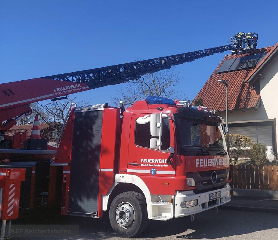 Es handelte sich um eine Solaranlage für Warmwasser. Kein weiteres Eingreifen der Feuerwehr nachdem die Kontrolle mit Drehleiter erfolgte. Es muss eine Fachfirma kommen zur Reparatur