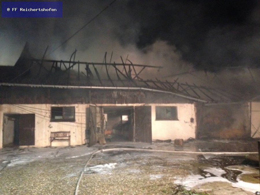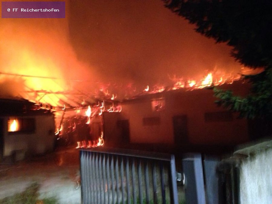 Schon während der Anfahrt konnte ein Vollbrand des Daches der gesamten Stallung erkannt werden. Dadurch wurden weitere Einheiten zur Einsatzstelle gerufen!
