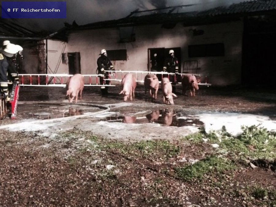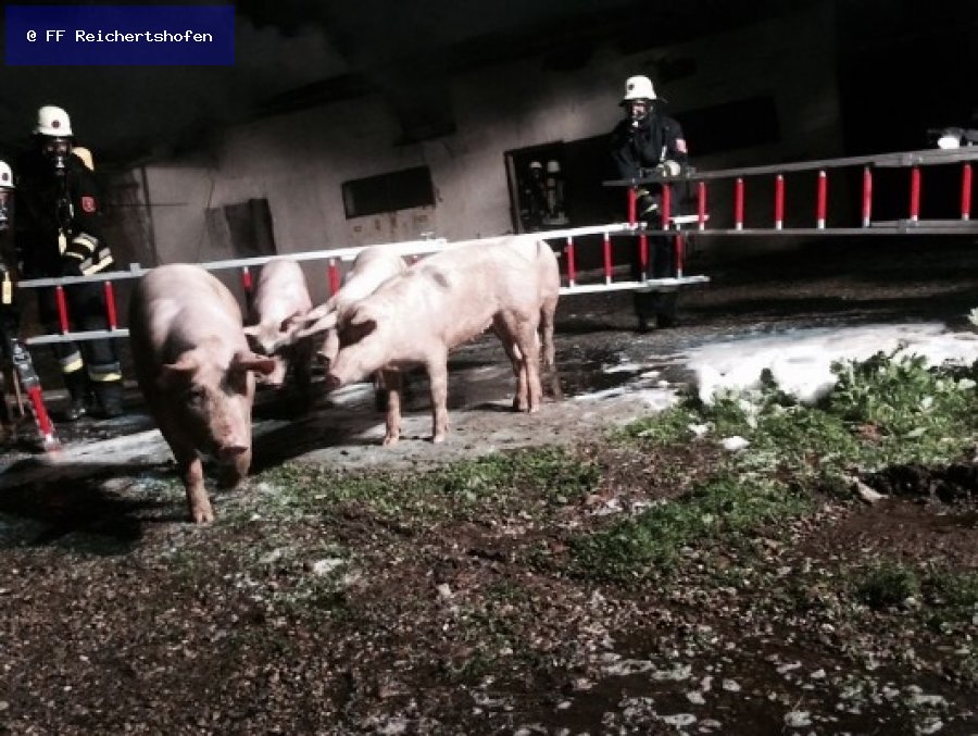 Die Feuerwehr Reichertshofen wurde zusammen mit der Feuerwehr Karlskron zu einem Brand einer Schweinestallung in Brautlach alarmiert.
