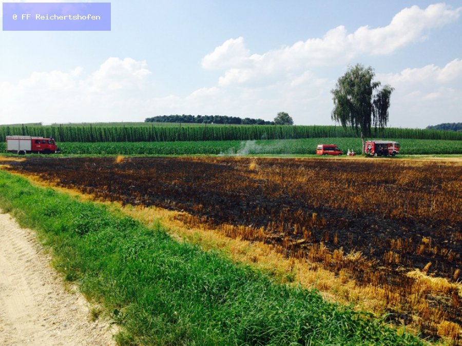 Zu einem gemeldeten Waldbrand wurden heute Nachmittag ein Großaufgebot an Feuerwehr- und Rettungskräften in das Waldgebiet an der Verbindungsstraße zwischen Puch und Gambach alarmiert. Kurze Zeit später stellte sich heraus, dass ein bereits teilweise abgemähtes Getreidefeld brannte. Das Feuer, konnte mit vereinten Kräften eingedämmt und zügig abgelöscht werden.