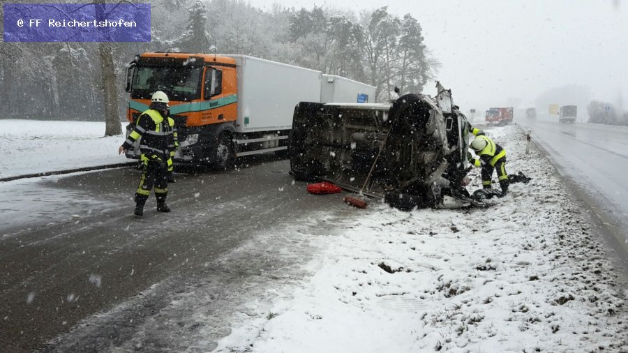 Verkehrsunfall auf dem Parkplatz bei Reichertshofen, B300.