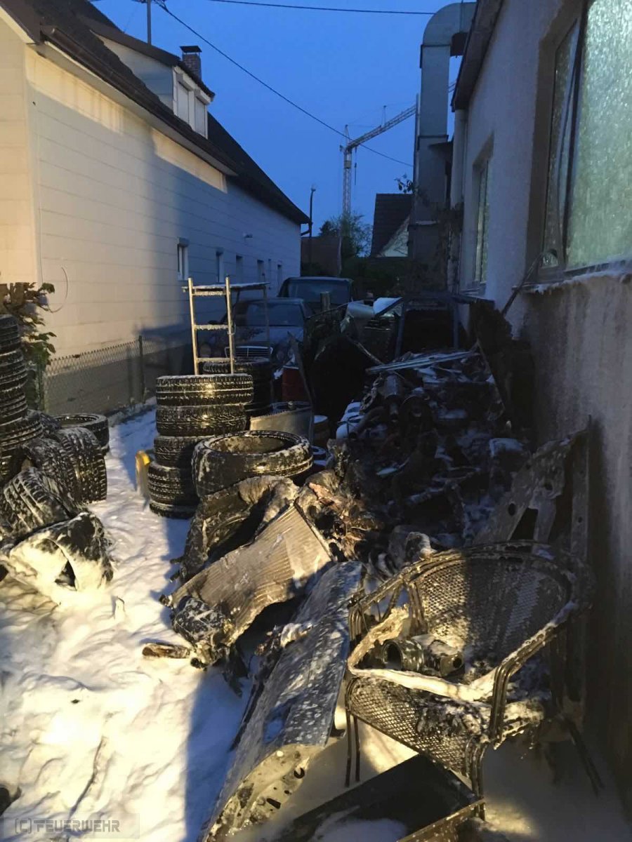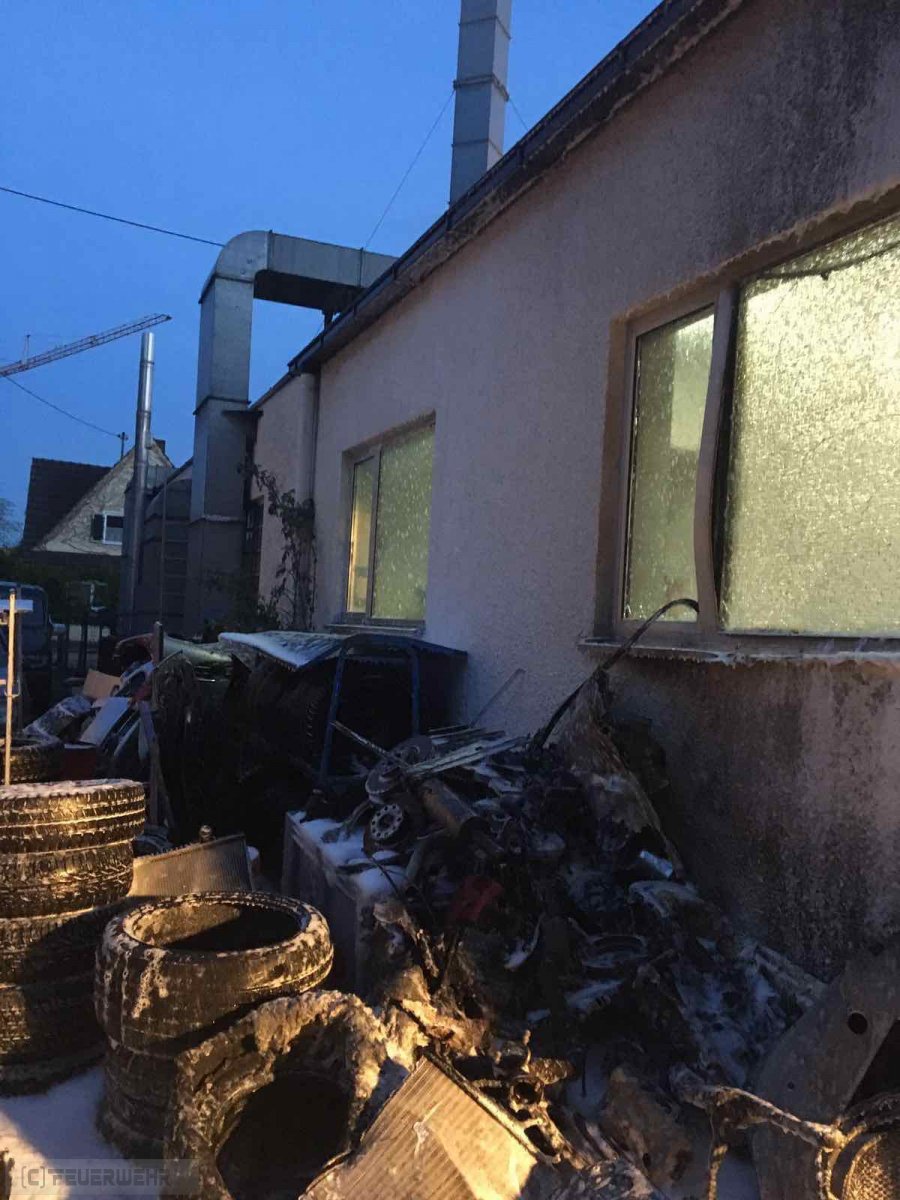 Am frühen Samstagmorgen rückte der Löschzug der Feuerwehr Reichertshofen zu einem gemeldeten Mittelbrand in die Xaveristraße aus. Ein Reifenlager (ca. 25 Quadratmeter) einer KFZ-Werkstatt brannte lichterloh. Die Wärmestrahlung war so enorm, dass dadurch Jalousien angrenzender Wohnhäuser, Glasscheiben und abgestellte Fahrzeuge beschädigt wurden.