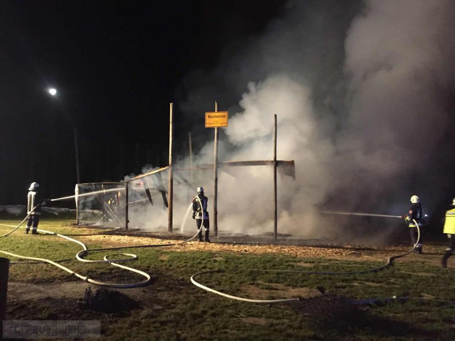 In Weichenried brannte letzte Nacht der hiesige Bauwagen. Der Vollbrand konnte von den Feuerwehren Hohenwart, Pörnbach und Weichenried rasch gelöscht werden. An dem Bau, mit einer Fläche von ca. 10m x 15m, entstand ein Totalschaden.