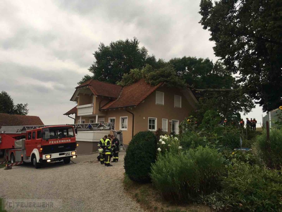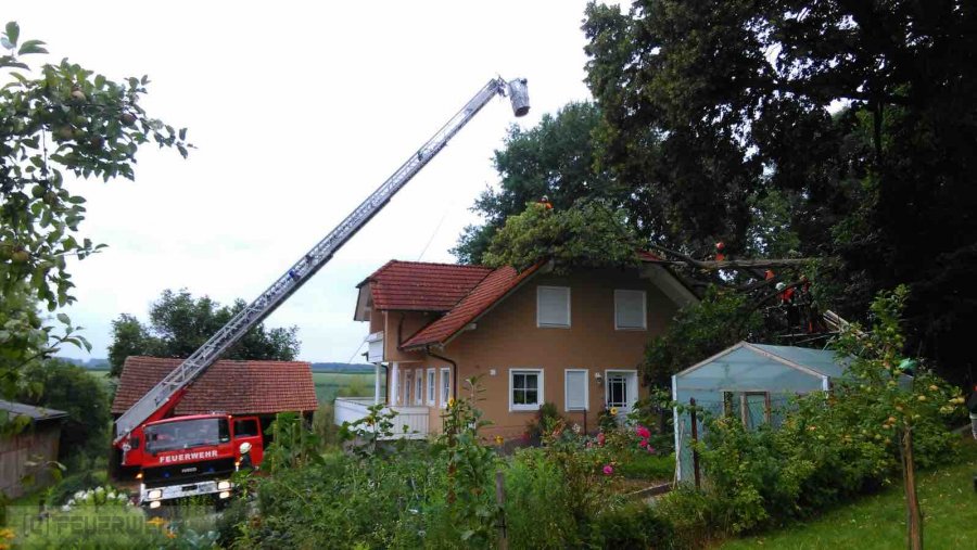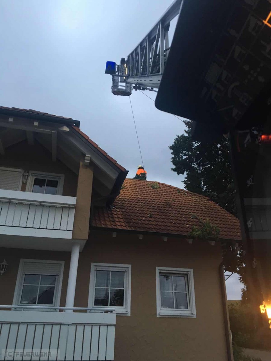 Zur Unterstützung der Feuerwehr Weichenried wurde die Reichertshofener Drehleiter nach Lindach angefordert. Dort stürzte ein massiver Ast auf das Dach eines Wohnhauses. Dieser wurde unter Zuhilfenahme der Drehleiter und einer Kettensäge zerlegt und entfernt.