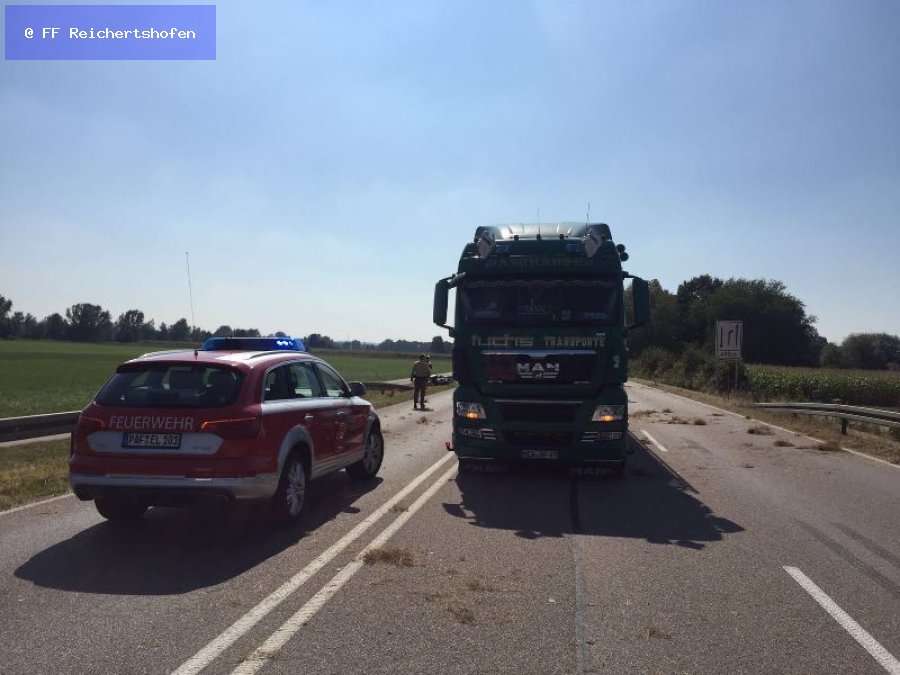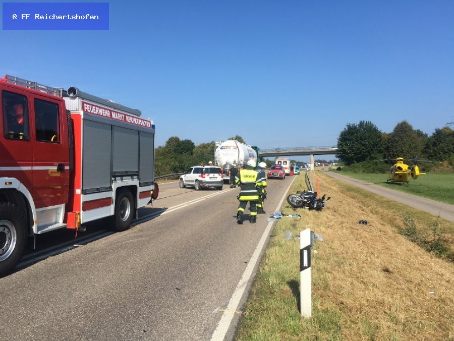 Zu einem Verkehrsunfall mit Beteiligung eines Motorrades wurden wir heute auf die B300 alarmiert. Ein LKW fuhr auf einen vor ihm fahrenden Motorradfahrer auf, wobei dieser stürzte.