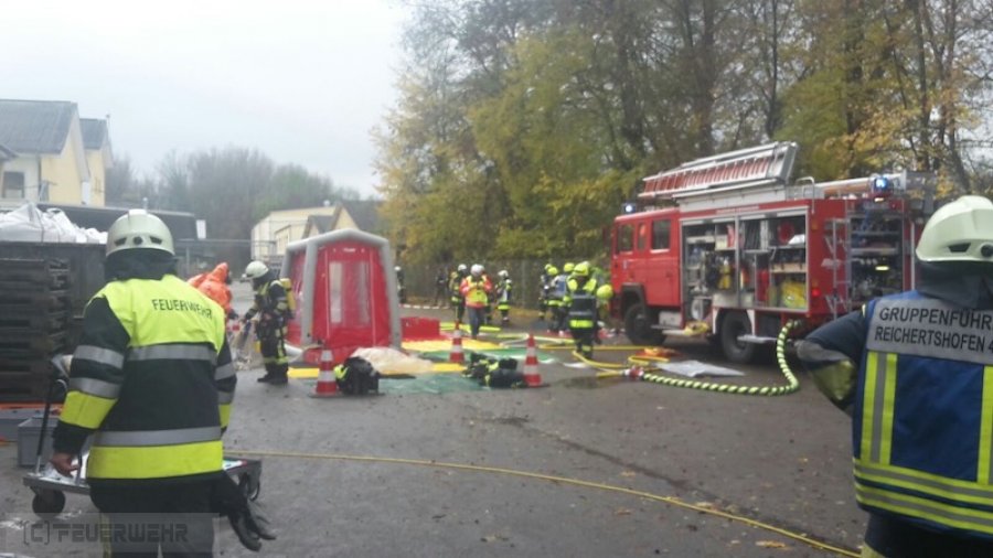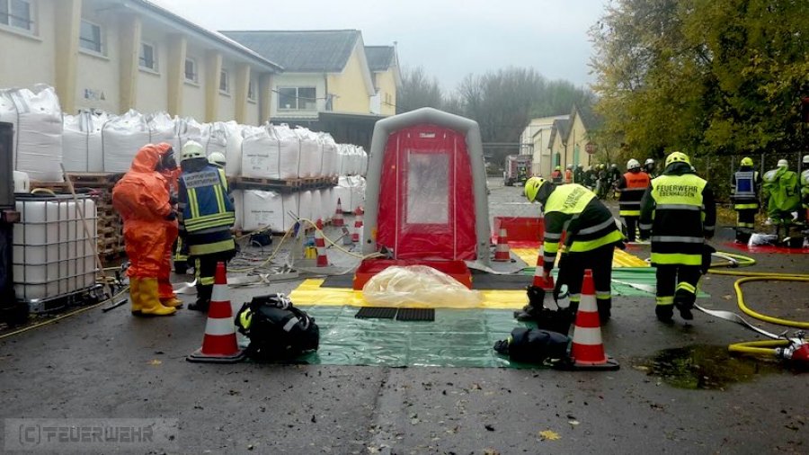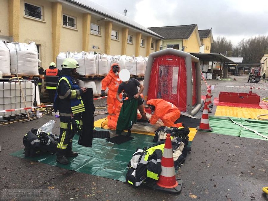 Die Feuerwehren Ebenhausen und Reichertshofen wurden heute Vormittag zu einer Brandmeldung, in einem chemieverarbeitenden Betrieb, nach Ebenhausen-Werk alarmiert. Nach der ersten Lageerkundung stellt sich heraus, dass es bei mehreren Gebinden zu einer chemischen Reaktion gekommen war. Durch dieses Lagebild wurde die Alarmstufe erhöht und dementsprechend mehrere Einheiten mit Chemikalienschutzausrüstung nachalarmiert.