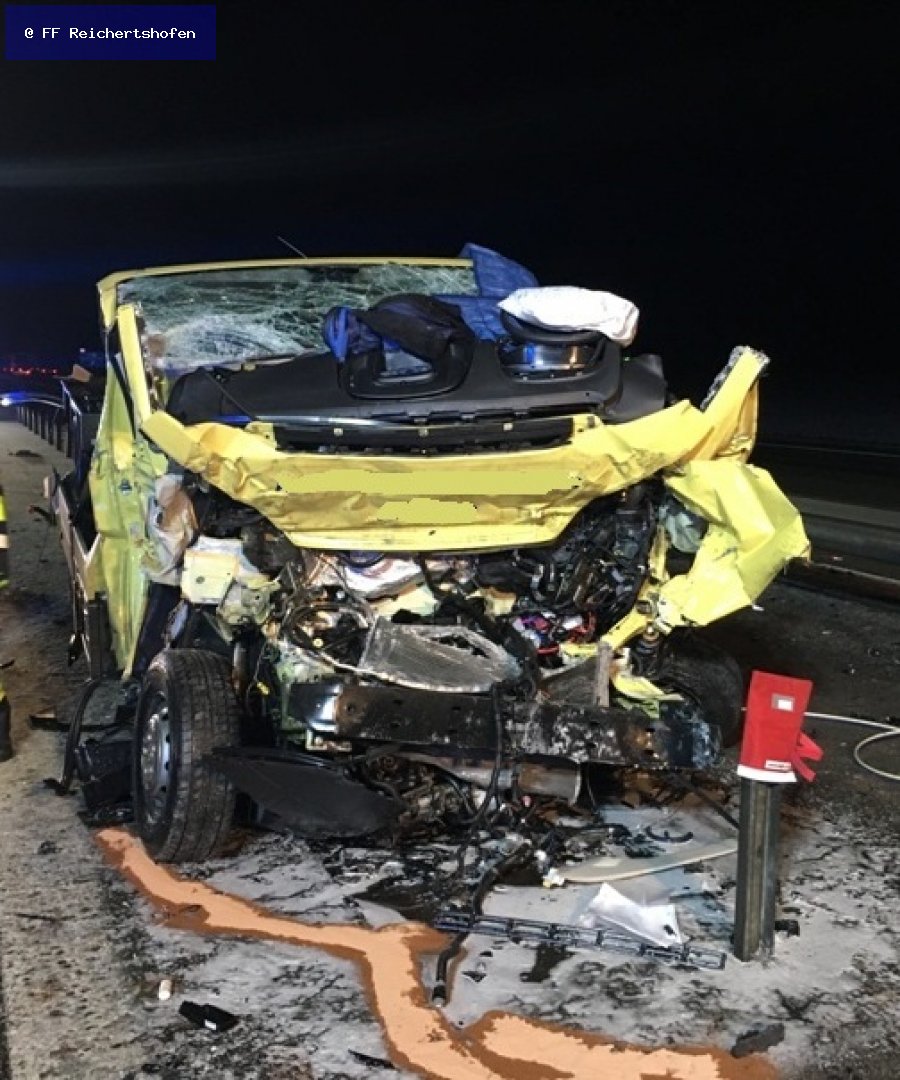 Bei einem Kleinlastwagen wurde der Fahrer bei einem Auffahrunfall eingeklemmt und musste von der Feuerwehr befreit werden. Der Fahrer konnte leider nur noch tot geborgen werden.
