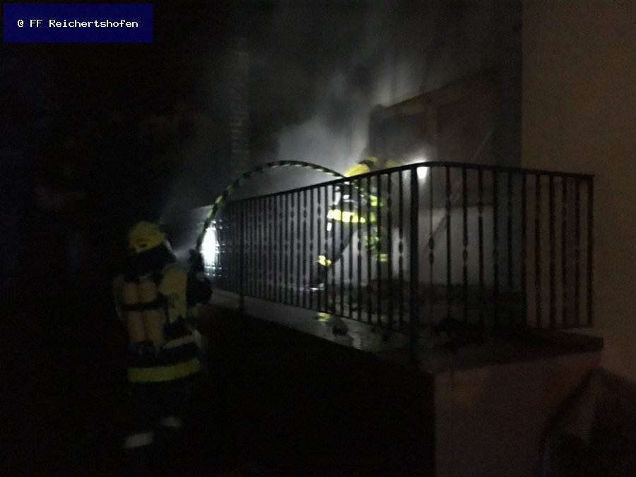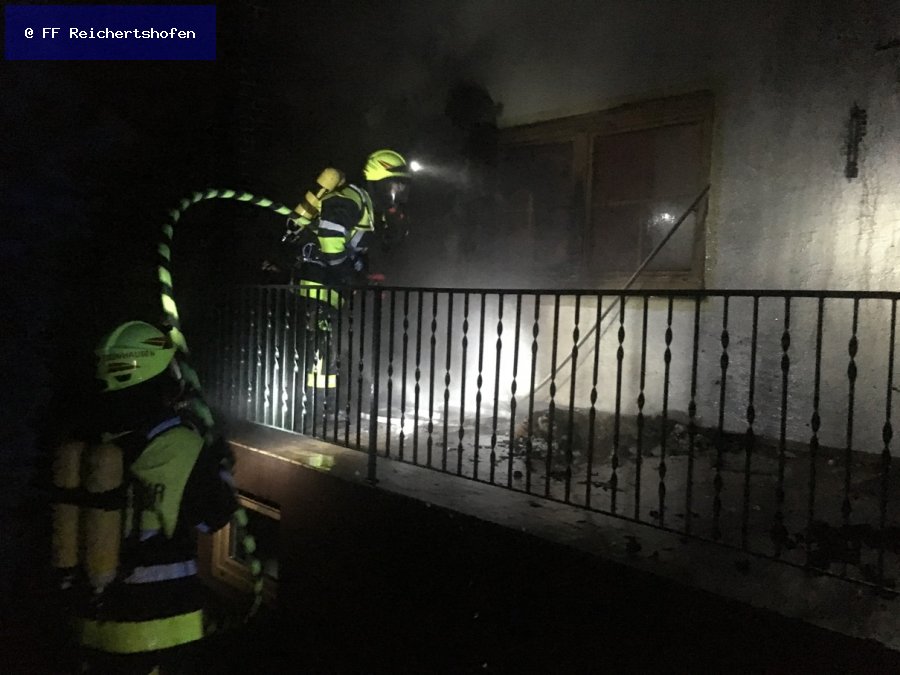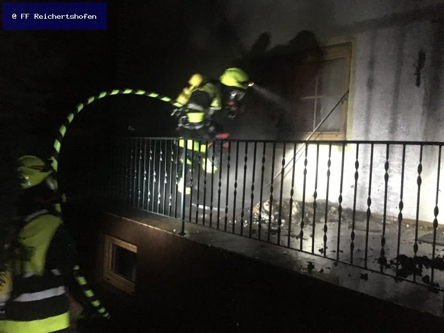 Auf einer Terasse waren einige Matratzen in Brand geraten und das Fenster zum Wohnhaus war bereits geborsten. Alle Personen konnten das Wohnhaus verlassen.