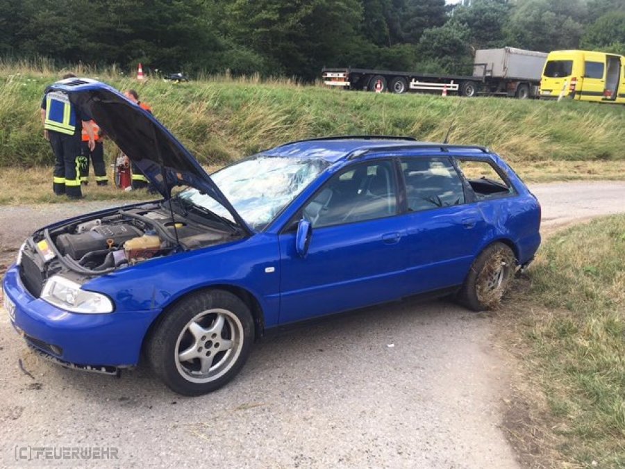 Ein PKW kam heute Nachmittag auf der B300, Höhe Starkertshofen, von der Fahrbahn ab, überschlug sich mehrfach und kam auf einem Feldweg zum Liegen. Die Fahrerin wurde bereits vor dem Eintreffen der Einsatzkräfte durch Ersthelfer aus ihrem demolierten Fahrzeug befreit und betreut. Die Dame wurde mit dem Rettungshubschrauber in ein Krankenhaus geflogen.