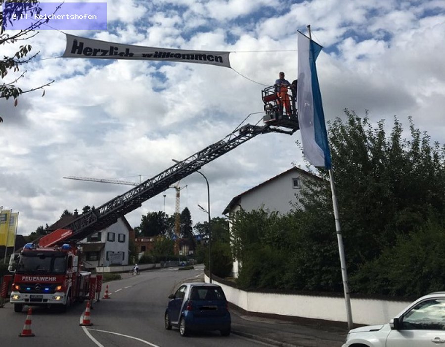 Unterstützung des Bauhofes bei Aufhängen der Banner fürs Paarfest