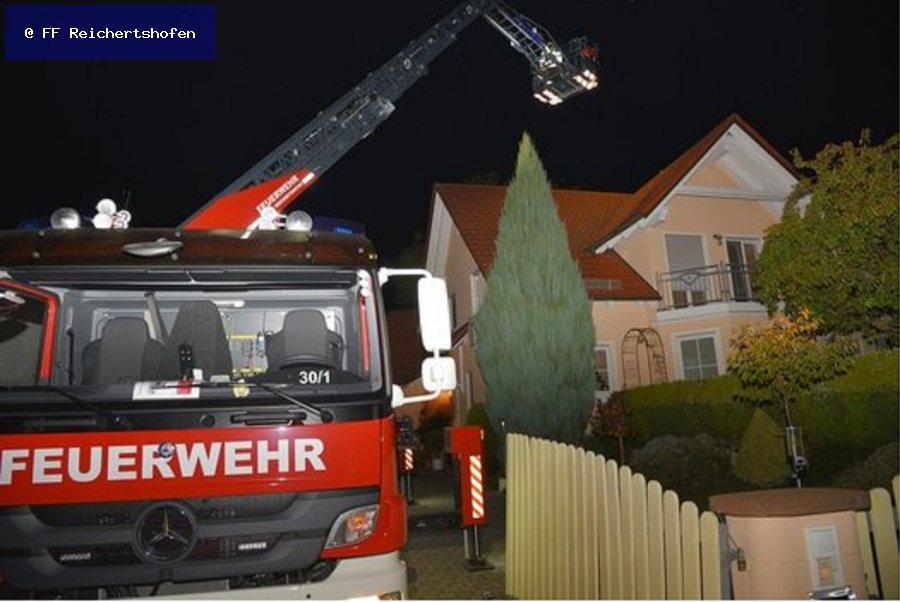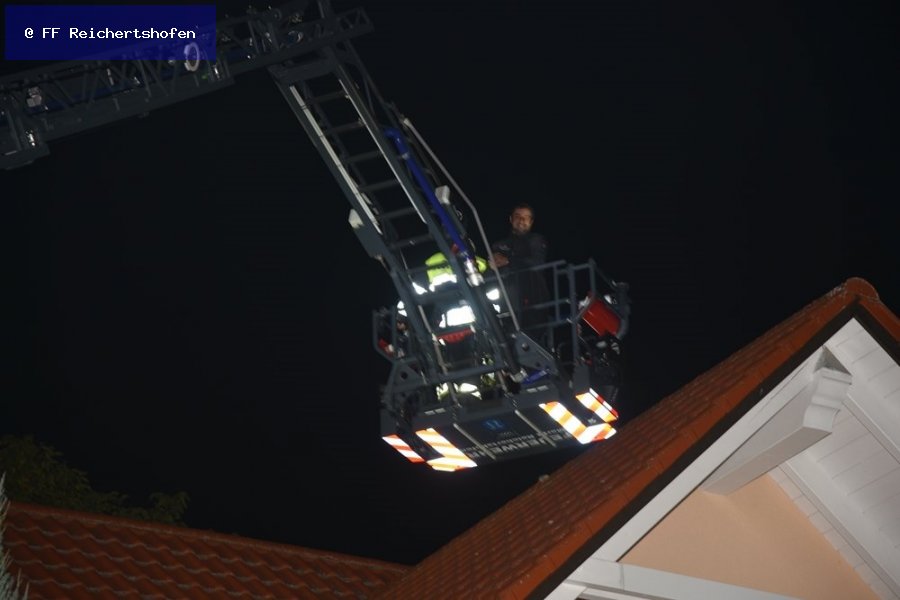 Nachforderung mit der Drehleiter zur Unterstützung bei einem Kaminbrand der Feuerwehren aus Puch und Pörnbach.