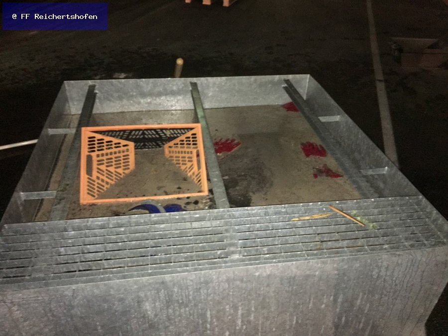 Vor Ort konnte eine Rauchentwicklung festgestellt werden, die nach Erkundung von einigen Atemschutztrupps von einem kleinen Behälter mit Granulat ausging. Das darin befindliche Granulat hatte sich erhitzt und verursachte dadurch die Rauchentwicklung.