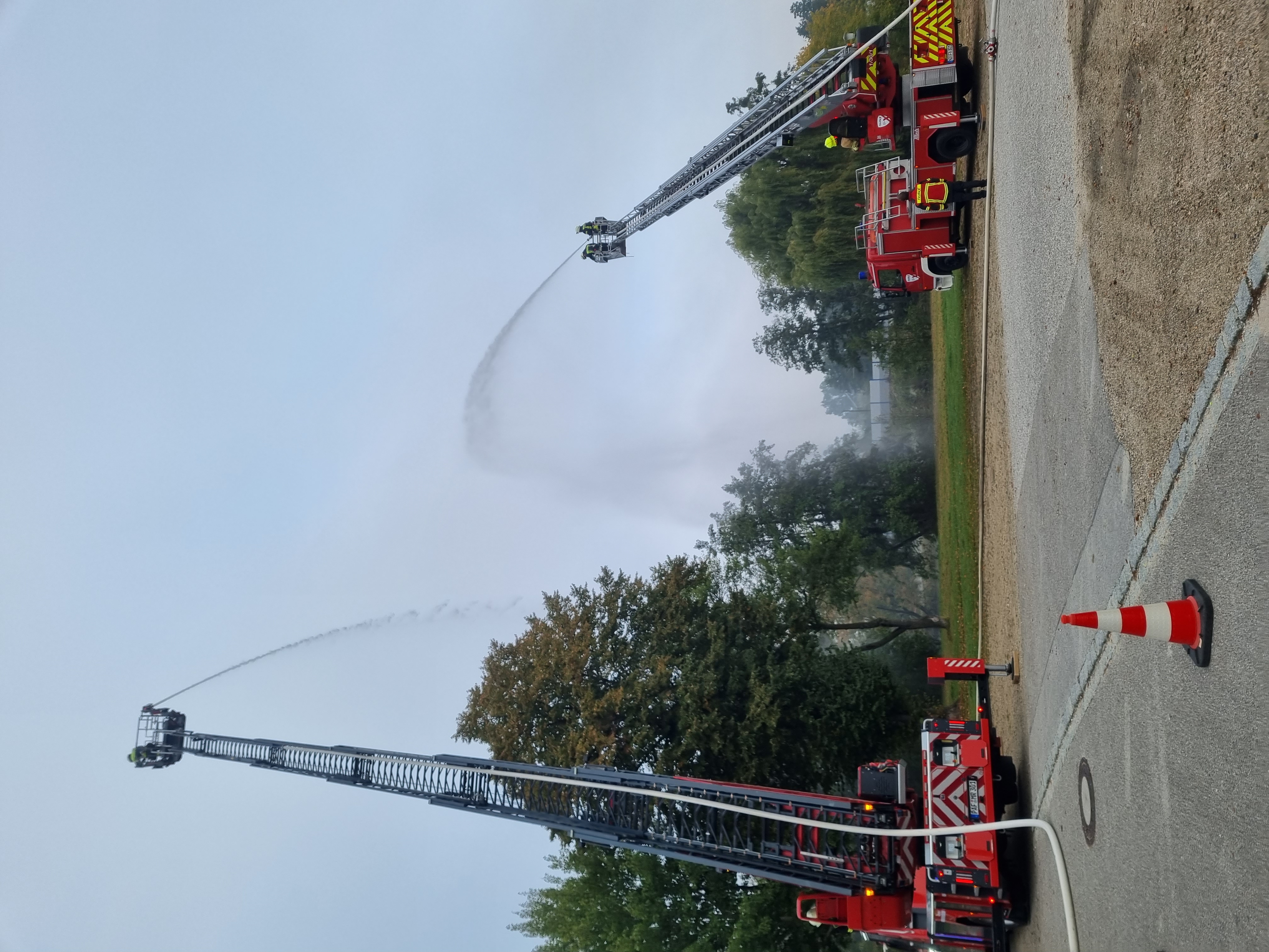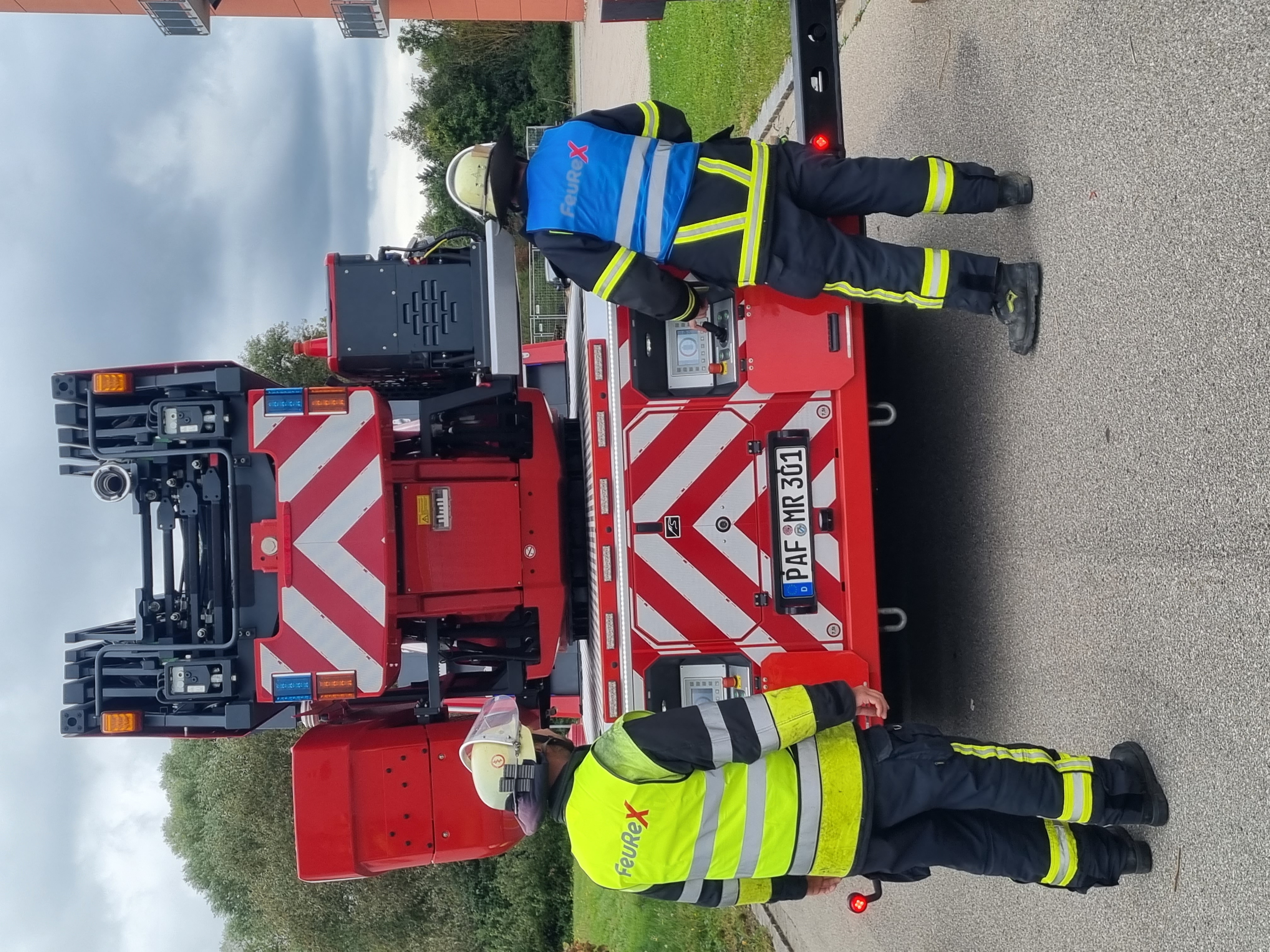 Am finalen Tag des Lehrgangs hieß es für die Drehleiteranwärter, Wasserabgabe mittels Wenderohr. Hierzu fuhren wir zusätzlich mit dem Gerätewagen Logistik und dem Löschgruppenfahrzeug an die Paar und saugten von dort aus an um den Werferbetrieb realitätsnah zu beüben. Auch heute stand uns bereits wie am Vortag neben der Reichertshofener Drehleiter, eine weitere durch die Feuerwehrschule FEUREX zur Verfügung. Somit hatte jeder Teilnehmer ausreichend die Möglichkeit ausreichend praxisorientiert zu üben. Anschließend ging es bis Mittag noch zu weiteren Anleiterübungen um auch den Bereich Unterflurbetrieb abzudecken.