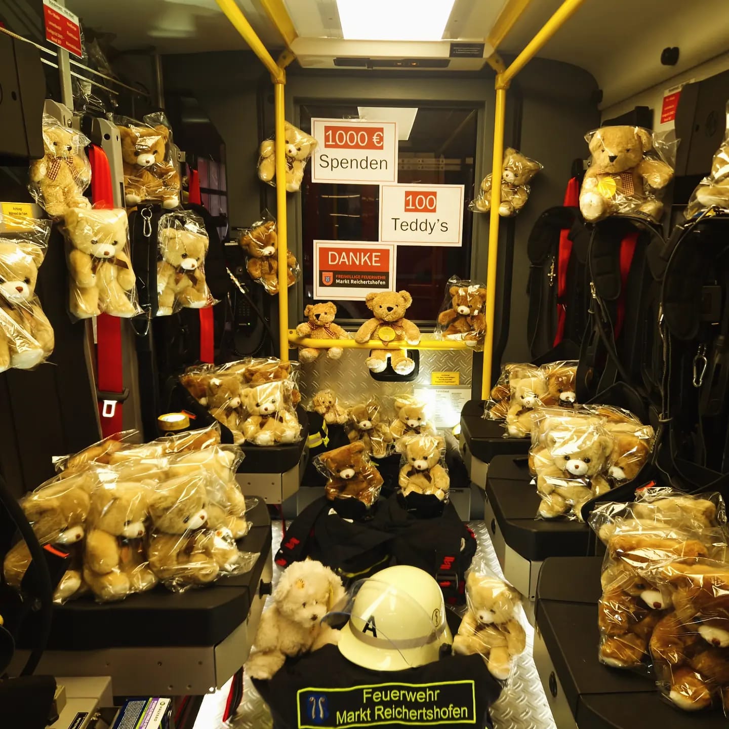 Im Gegenzug erhielten wir sogenannte "Rettungsteddy's". Zum Einsatz kommen diese bei Situationen im Einsatzalltag wo Kinder betroffen/ involviert sind. Sie spenden Trost, geben Kraft und haben oftmals heilende Kräfte!